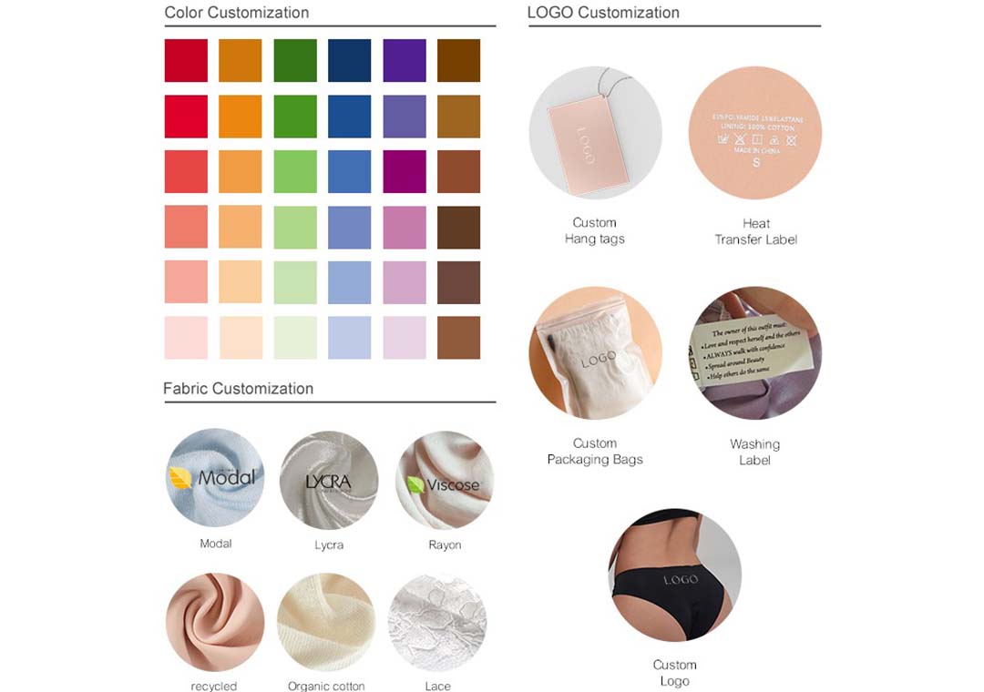 1. تقديم حزمة تقنية كاملة، مع سرد متطلبات التخصيص بوضوح لسراويل الدورة الشهرية، بما في ذلك: مخطط مقاسات الإنتاج، والأقمشة والملحقات، وصور المنتج، ومتطلبات العملية، والمتطلبات الوظيفية (على سبيل المثال، ما مقدار امتصاص السوائل المطلوب؟)، وشعار العلامة التجارية، والنمط، واللون، والكمية، وما إلى ذلك.